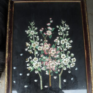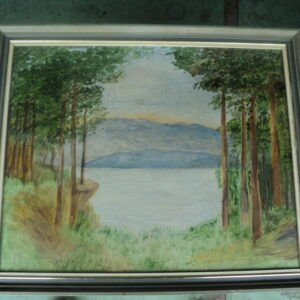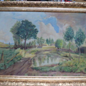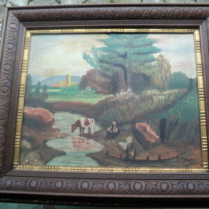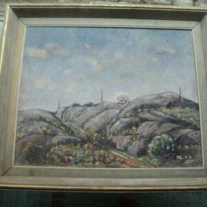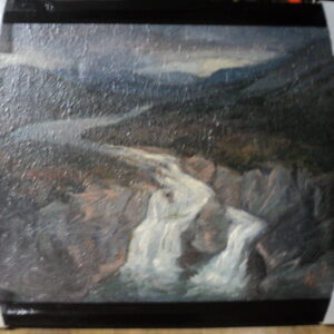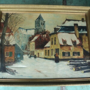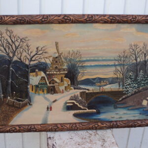 quadro paesaggio innevato con case e mulino a vento olio su tela
