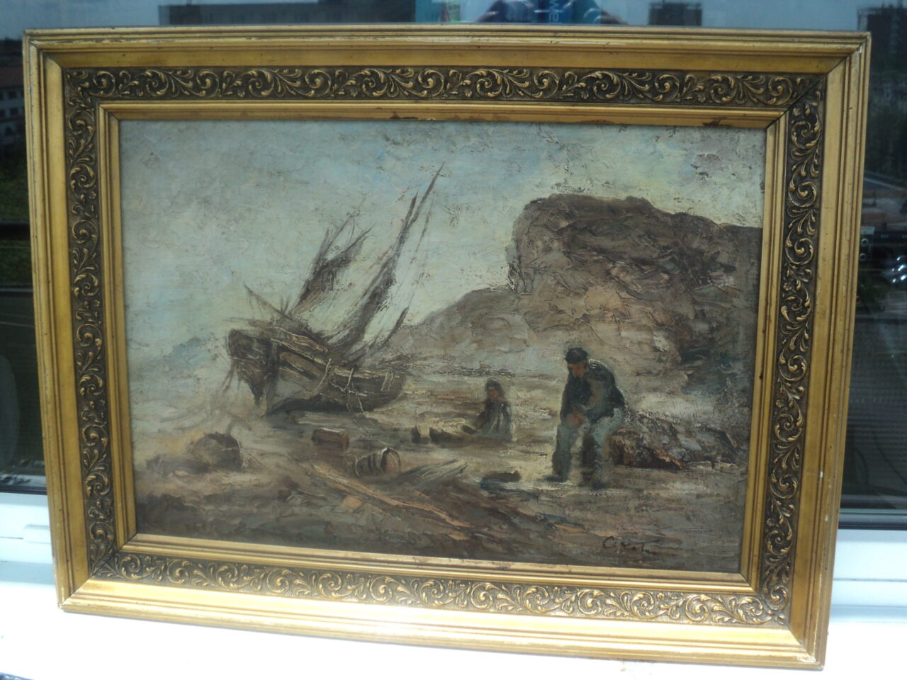 + Spedizione variabilequadro barca con pescatori olio su tela 63×47