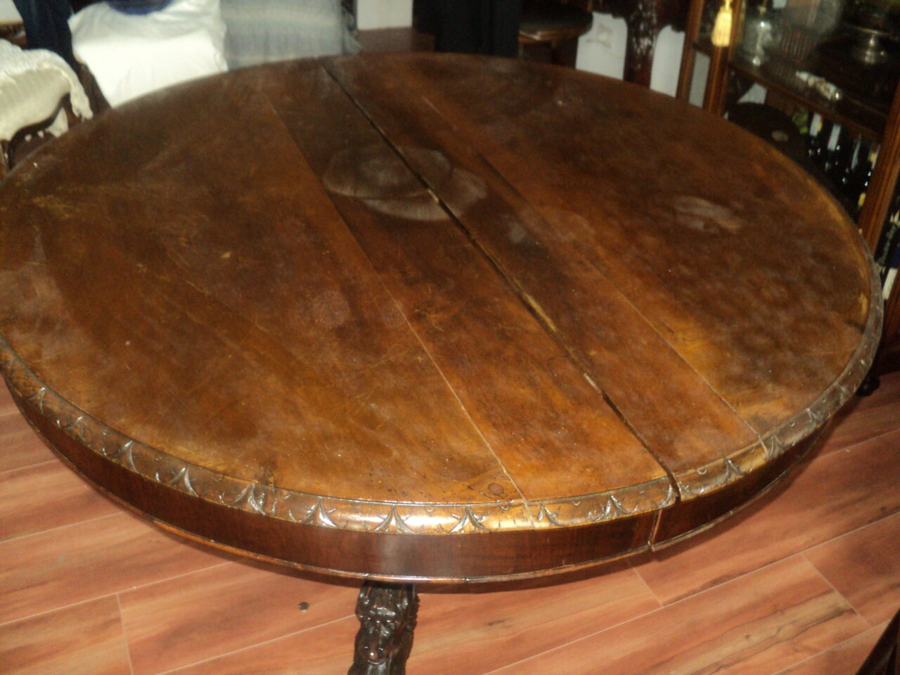 tavolo rotondo antico in noce massello allungabile restaurato alt 84 per 123 aperto circa 3 metri
